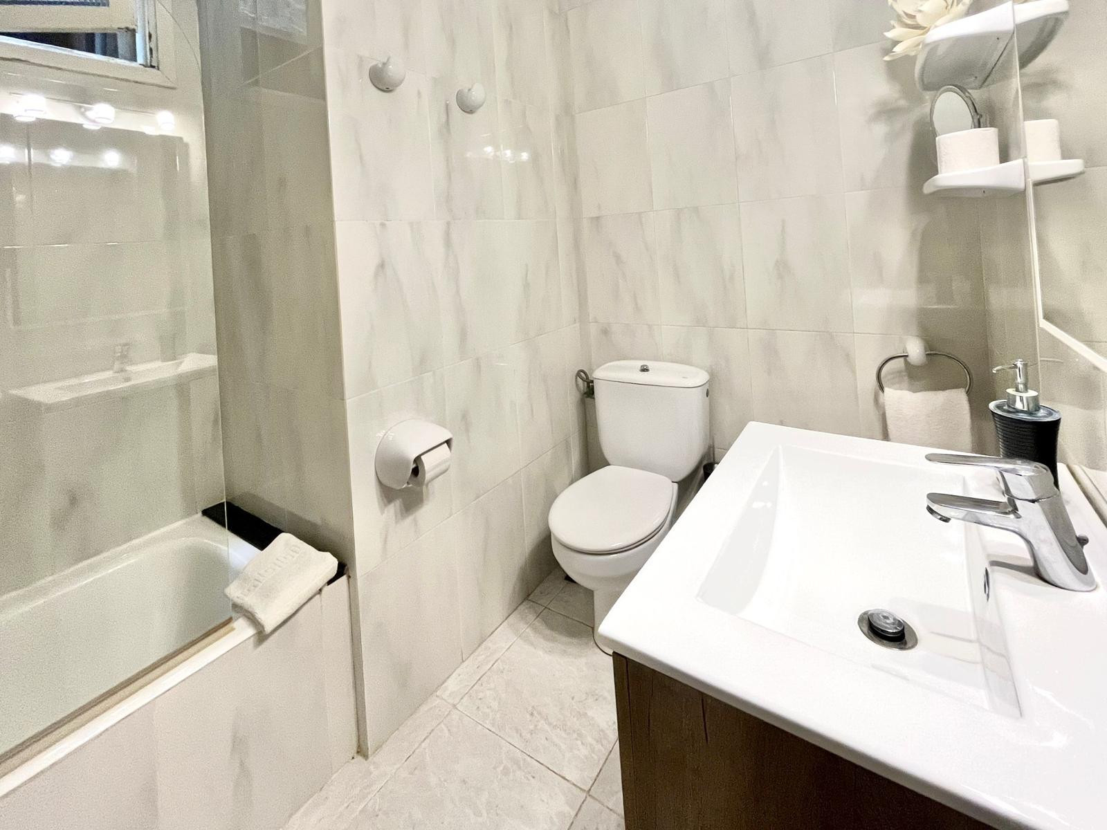 The apartment has 2 bedrooms: one with a double bed and another with a single bed (possibility of an extra bed or sofa bed), and a full bathroom with a bathtub. With capacity for up to 4 people, it is ideal for couples, small families, or travellers seeking relaxation without giving up a privileged location.
